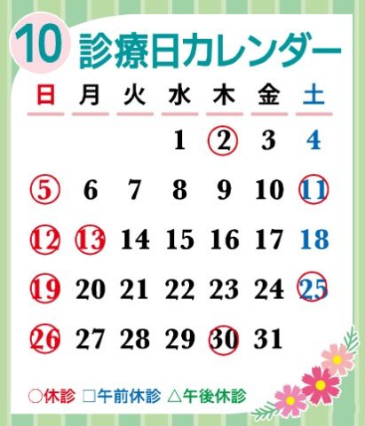 10月診療のお知らせ